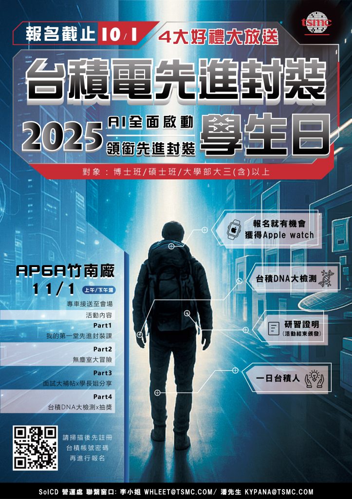 📩 活動聯絡窗口: SoICD 營運處 李小姐 WHLEET@TSMC.COM / 潘先生 KYPANA@TSMC.COM